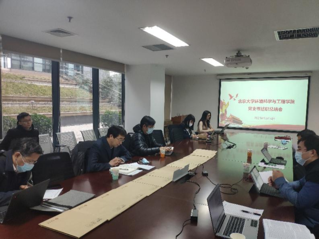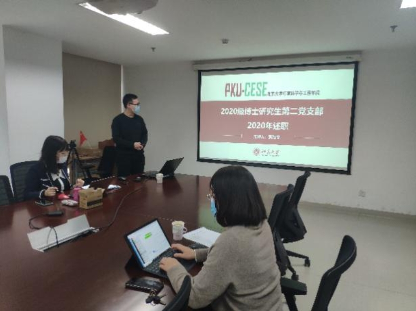 首先,师生党支部依次以PPT形式,相继汇报过去一年中的支部工作成果和收获,以及在具体工作中遇到的困难和存在的问题,对下一阶段的工作进行规划和展望。学院师生各支部强化政治理论学习,学习教育已成常态化;坚持党员发展的工作标准,遵循“坚持标准,保证质量,改善结构,慎重发展”的方针,吸收新党员;严格落实“三会一课”制度,通过开展主题党日活动强化现有党员的教育;创新党建工作内容与载体,探索了较好的经验做法。其中,教工第一党支部以时间轴的形式展示了从了解抗疫形势、遵守防疫规定、探讨科学问题到认清国际局势、加强政治学习、争分夺秒工作的支部生活,组织教师参观三峡大坝和许家冲村。教工第二党支部倡导垃圾分类,与餐饮中心、学生支部、马院学生党支部、海淀环卫、燕园街道开展交流共建。教工第三党支部开展北大附中石景山分校进校园的环保创新活动;同时党建引领科研,开展抗疫攻关项目。教工第四党支部完成教师党员发展,积极参加学院招生工作,赴西藏调研推动北京大学与西藏签订战略合作协议。