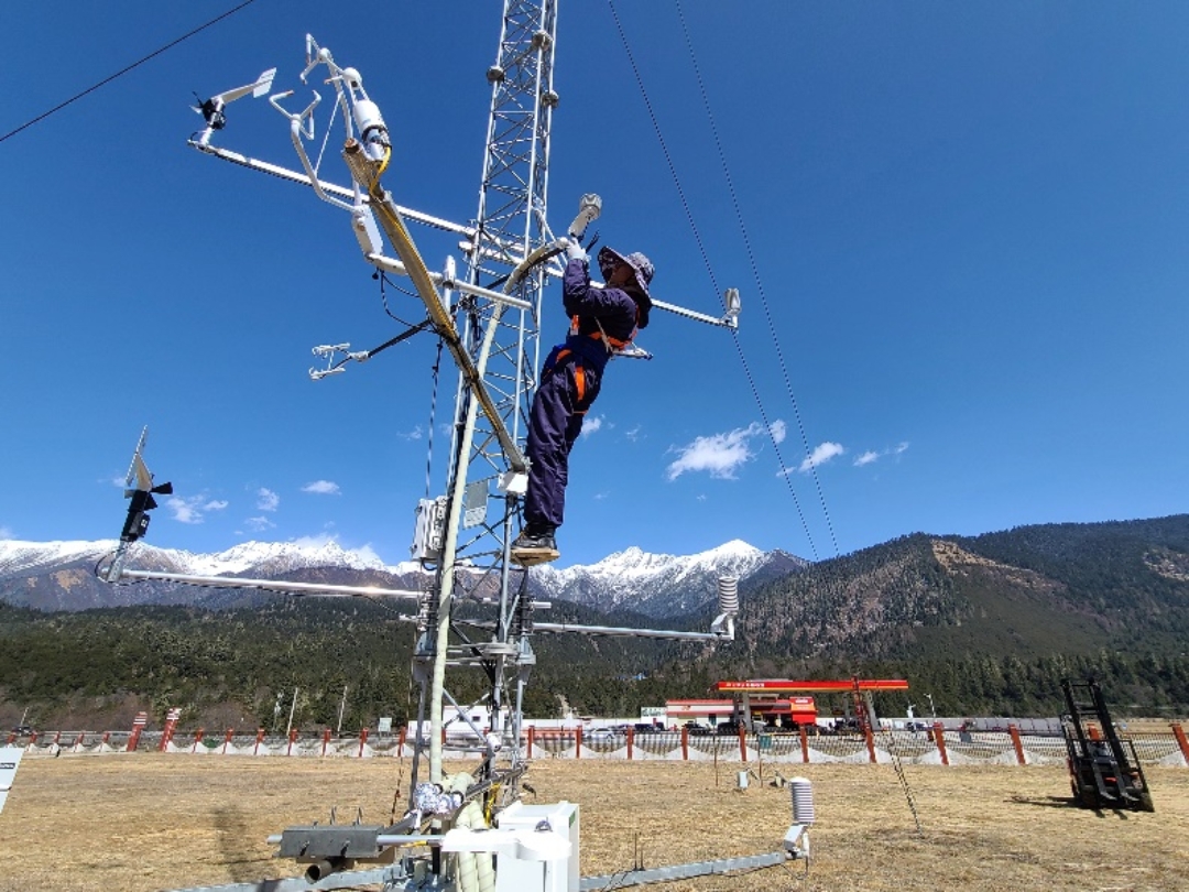 科考队员正在架设观测设备(鲁朗站点)