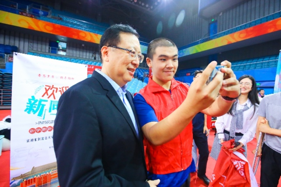 北京大学校长龚旗煌,党委常委、副校长王博,党委副书记、副校长宁琦等校领导与环院师生合影